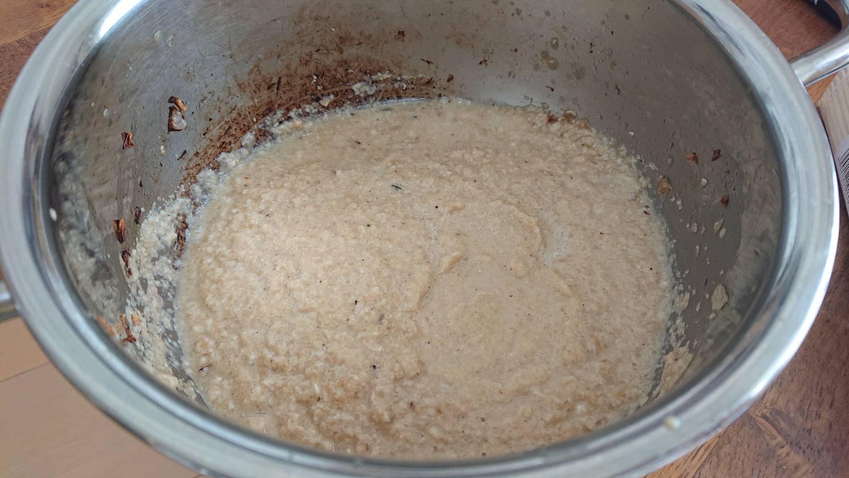 ミキサーを使用した人は,ペーストを鍋に戻します。