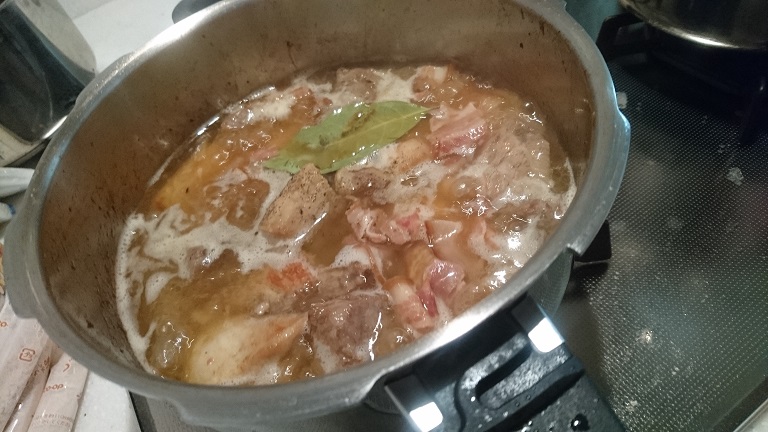 違う点は、タイムが葉ではなく粉である、ベーコンがブロックではなくペラいやつである、圧力鍋を使用したの三点のみです。